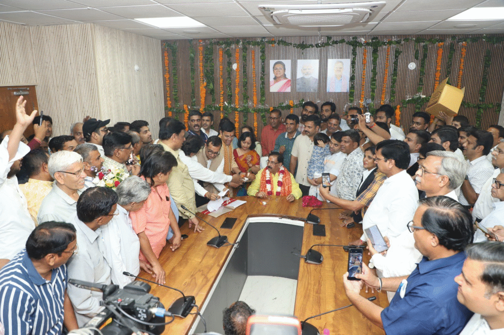 अध्यक्ष, डॉ.अरूण चतुर्वेदी ने वित्त विभाग में गुरुवार को दोपहर लगभग 2 बजे शुभ मुहूर्त में पूजा अर्चना कर कार्यभार ग्रहण किया। इस दौरान उनके परिजन और बीजेपी के नेता और कार्यकर्ता मौजूद थे।